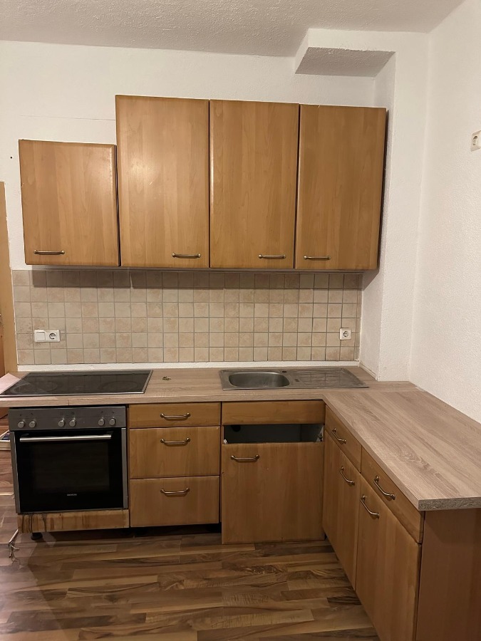 Die Wohnung im Erdgeschoss besteht aus 2-Zimmern-Wohnung, ein Schlafzimmer, ein Wohnzimmer, einer Küche sowie einem Badezimmer mit Dusche und Fenster.