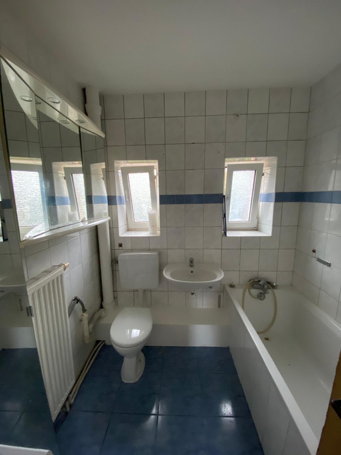 Im 1. Obergeschoss befindet sich eine weitere 2-Zimmer-Wohnung mit Schlafzimmer, Wohnzimmer, Küche sowie einem Badezimmer mit Badewanne und Fenster.