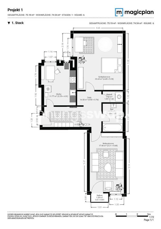 Zimmeranzahl :2 Wohnfläche :ca. 76,00 m² Etage :1 Balkon :