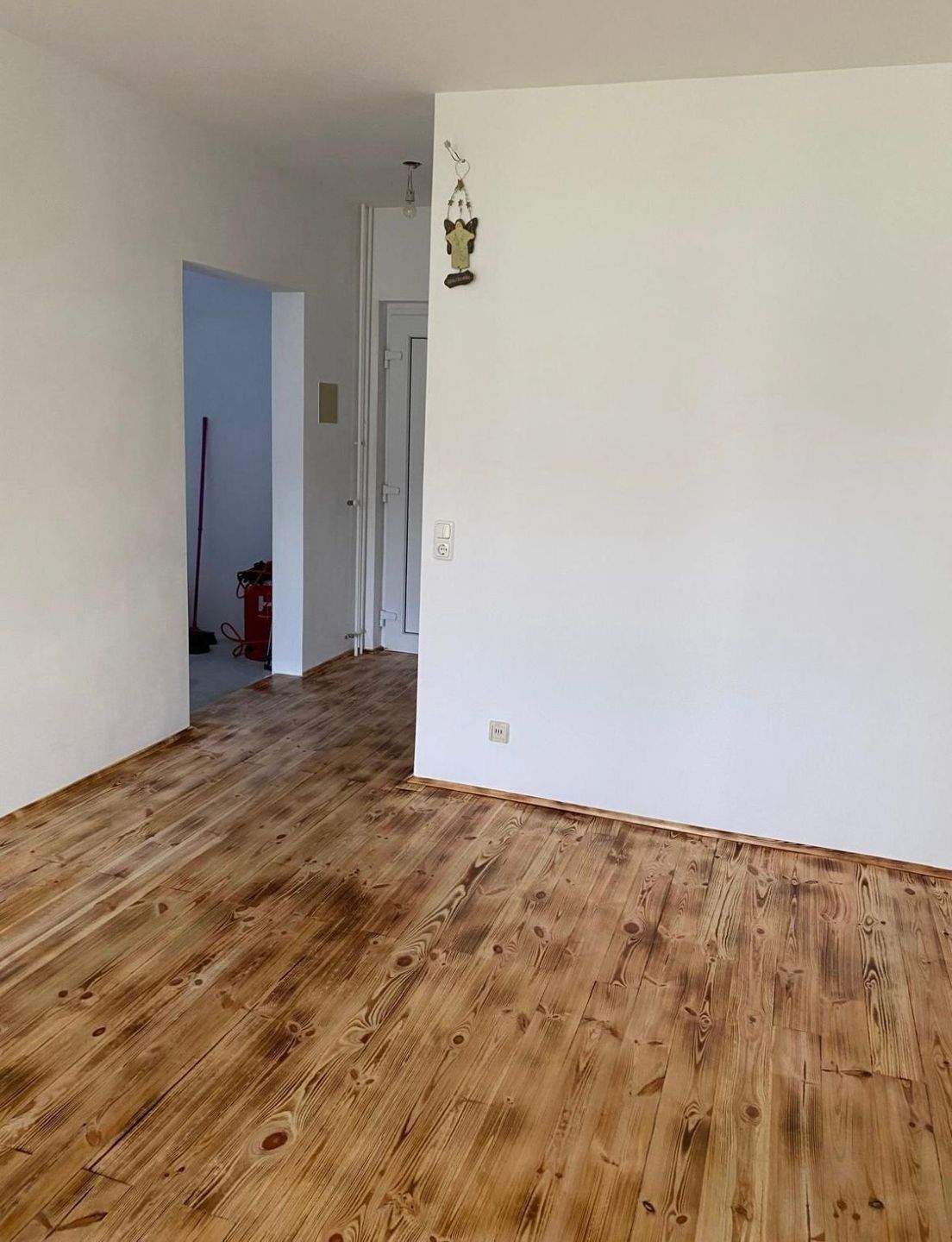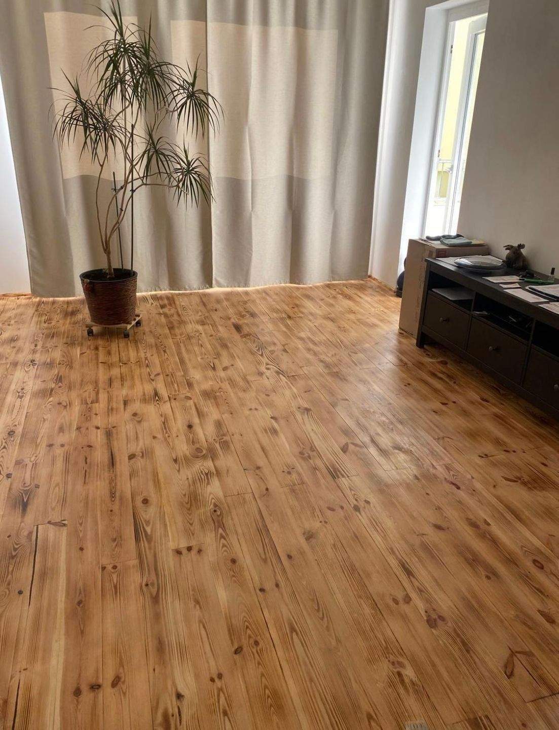 • Massives Parkett am Boden verlegt -