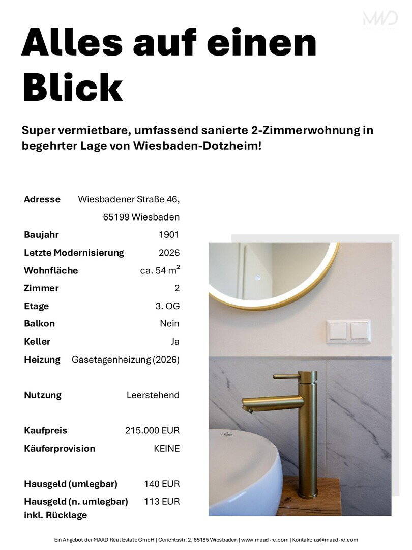 Sie befinden sich hier: Vorankündigung! Sanierte 2-Zi.-Altbauwohnung in Wiesbaden-Dotzheim in Wiesbaden Dotzheim - 269A8V5TYV6L | 1A-Immobilienmarkt.de