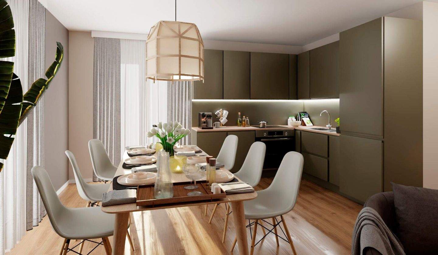Die offene Küche als Mittelpunkt mit direktem Zuga - Große Dachterrasse für entspanntes Wohnen