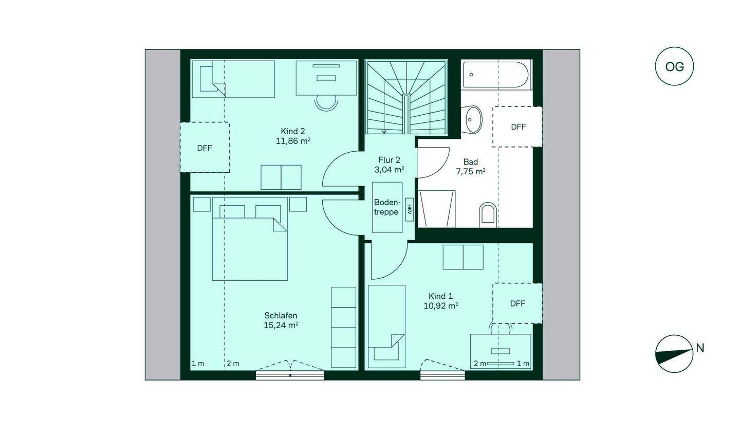 • Grundriss vom Obergeschoss im Doppelhaus WE019 -