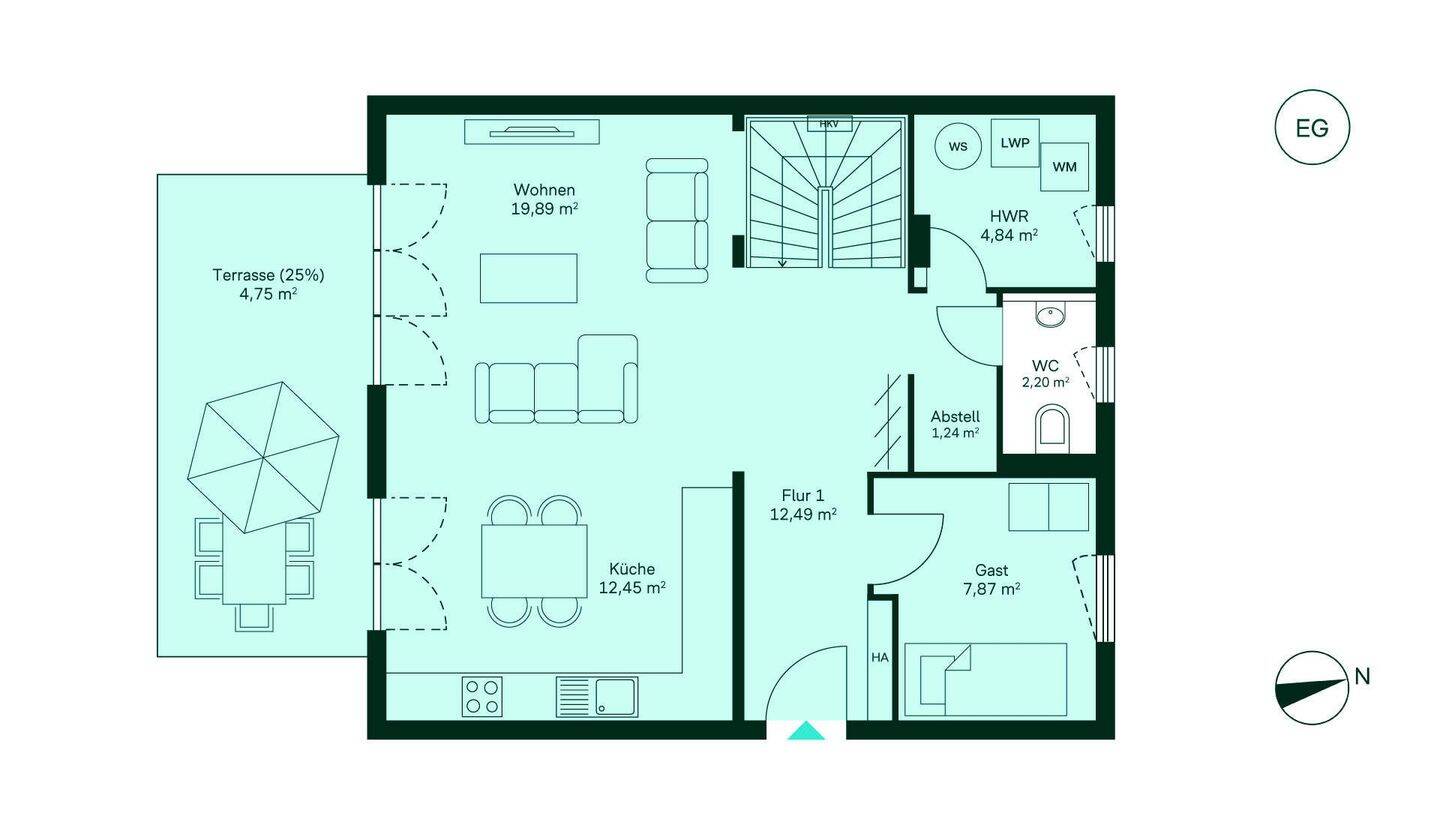 • Grundriss vom Erdgeschoss im Doppelhaus WE019 -