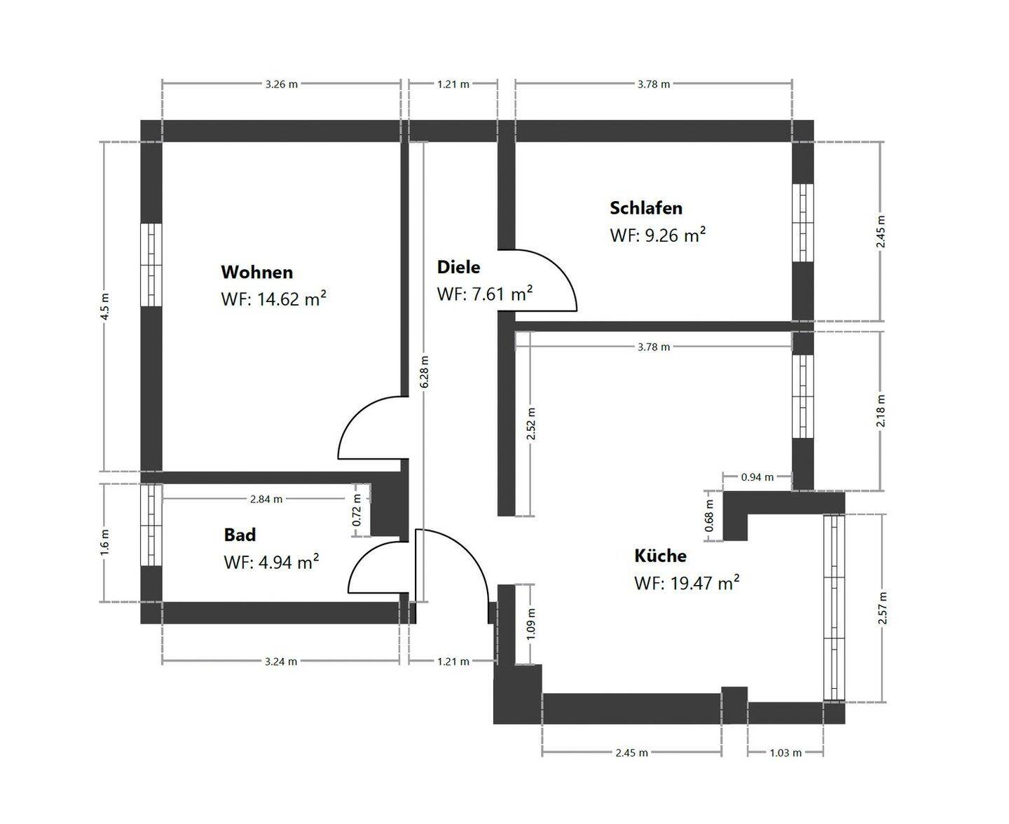 Gesamtgröße:ca. 56,00 m²