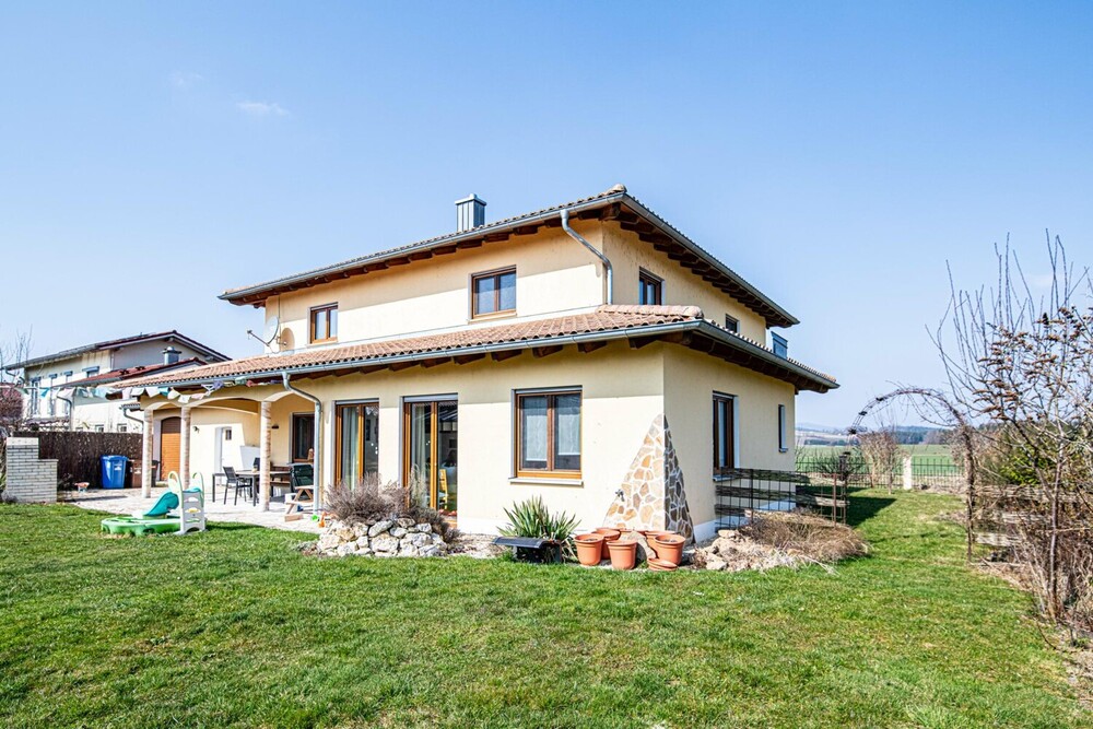 Dieses hochwertige Einfamilienhaus im Toskana Stil wurde im Jahr 2018 von der Firma Haimerl Bau in Schönthal errichtet und präsentiert sich heute in einem gepflegten Zustand. Mit einer Wohnfläche von ca. 214 m² auf einem großzügigen Grundstück von ca. 1.183 m² bietet die Immobilie viel Raum für vielfältige Lebenskonzepte. Die gehobene Ausstattungsqualität sorgt für ein angenehmes Wohngefühl auf allen Ebenen.