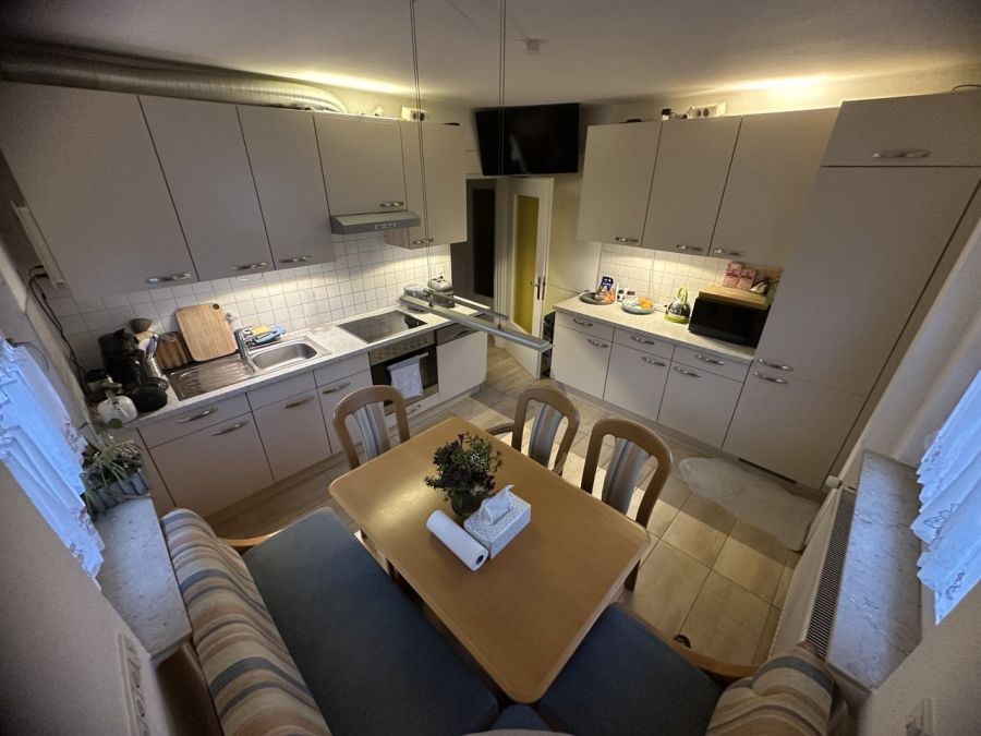 Teilweise ist die Wohnung bereits möbliert, die Wohnküche ist vollständig möbliert und halbwegs ausgestattet. Die Zimmer sind teilmöbliert. Der Boden der Zimmer ist mit Parkett ausgestattet. Ein Stellplatz kommt mit 30 hinzu.
