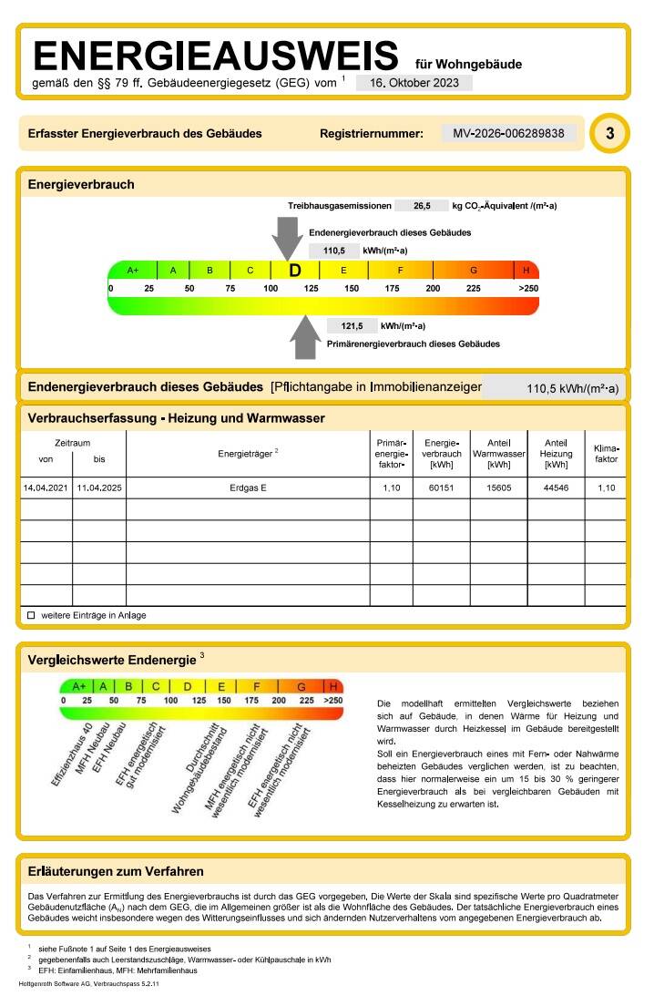 | Energieverbrauchkennwert: | 110,5 kWh/(m²·a) kWh/(m²·a)