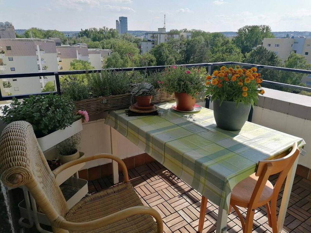 Balkon im Sommer - Stilvolle 3,5-Zimmer Penthousewohnung (ca. 95 m²) in Stuttgart-Möhringen