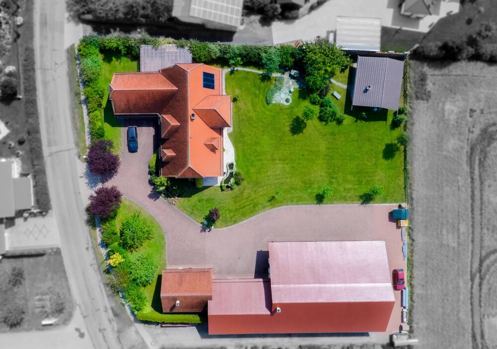 • Nebengebäude: Ausbaubares Nebenhaus, Garagen und Lagerhalle -