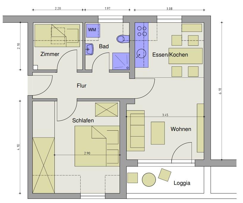 Gesamtgröße:ca. 57,00 m²