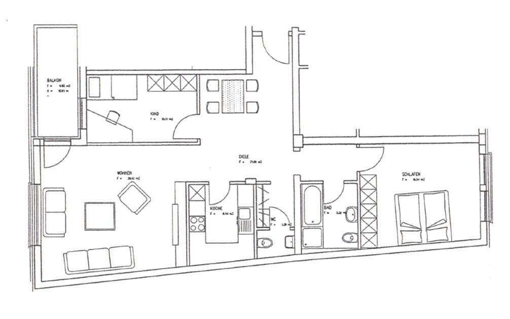 Der großzügige Wohnbereich mit Zugang zum Balkon bildet das Herzstück der Wohnung. Große Fensterflächen sorgen für eine angenehme Belichtung und schaffen eine freundliche Wohnatmosphäre. Der Balkon selbst bietet ausreichend Platz für einen kleinen Essbereich und lädt zum Verweilen ein - mit Blick über die Umgebung.