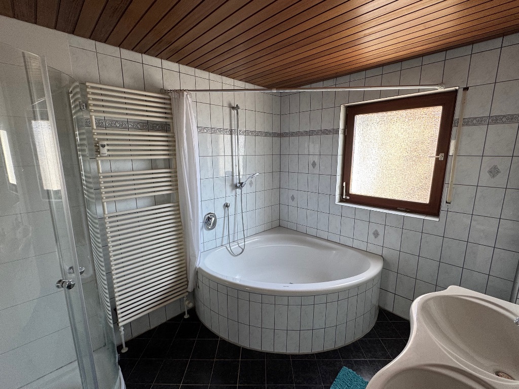 - Tageslichtbad mit Dusche, Badewanne, WC und zwei Waschtischen
