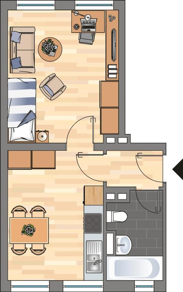 Sie befinden sich hier: Gemütliche 2-Zimmer-Wohnung in Kiel – 40,89 m², 1. Etage rechts in Kiel Gaarden-Ost - 3370678403-203-702 | 1A-Immobilienmarkt.de