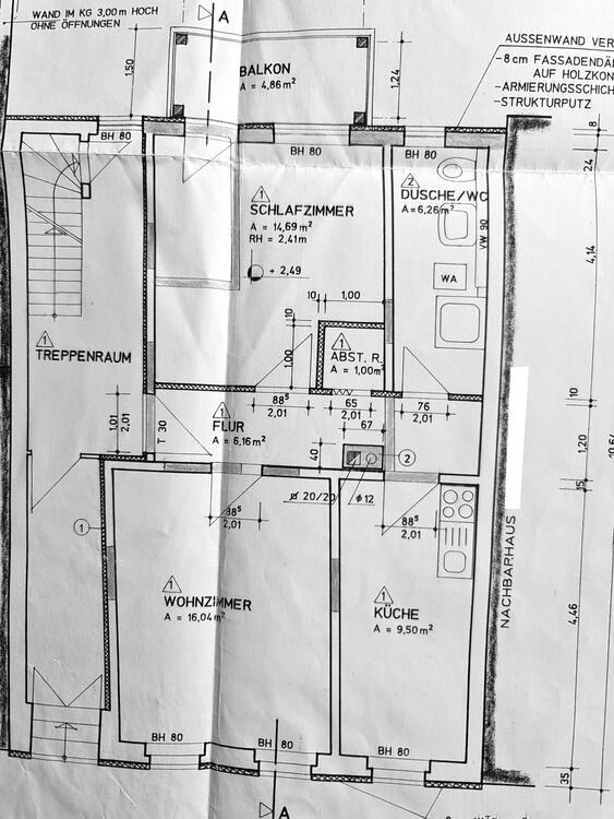 Dachgeschoss (vermietet, Kaltmiete 396, - EUR) Dreizimmerwohnung mit sep. Küche und Duschbad und 4, 86 Balkon: 65, 88 m²