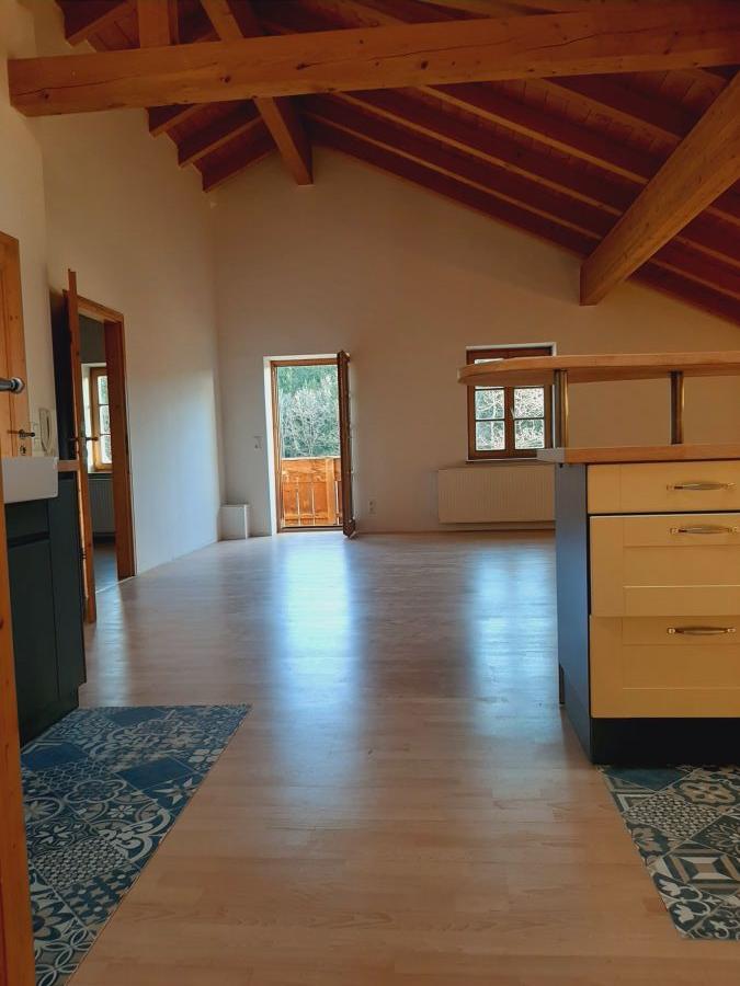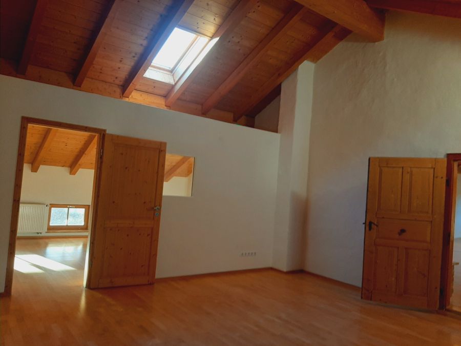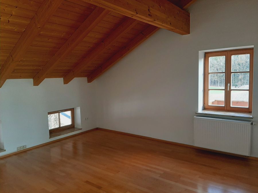 Traumhafte Loftwohnung im Dachgeschoß eines ehemaligen Bauernhauses, nunmehr von mehreren Parteien bewohnt, in der Nähe von Tittmoning, umgeben von Wiesen, Obstbäumen und Wäldern soweit das Auge reicht. Das Loft lässt sich nur als Wohnung aber auch in einen Bereich zum Wohnen und einen Bereich zum Arbeiten unterteilen, jeweils mit eigenen Zugängen. Die Räume sind nach Süden ausgerichtet und bestechen durch den hohen offenen Sichtdachstuhl. Zum Mietobjekt gehören ein Balkon, einen Carportstellplatz, ein Außenstellplatz und ein Kellerabteil. Ideal für junge Familien, Business at Home, Künstler und Freiberufler etc. die die Idylle und Natur schätzen.