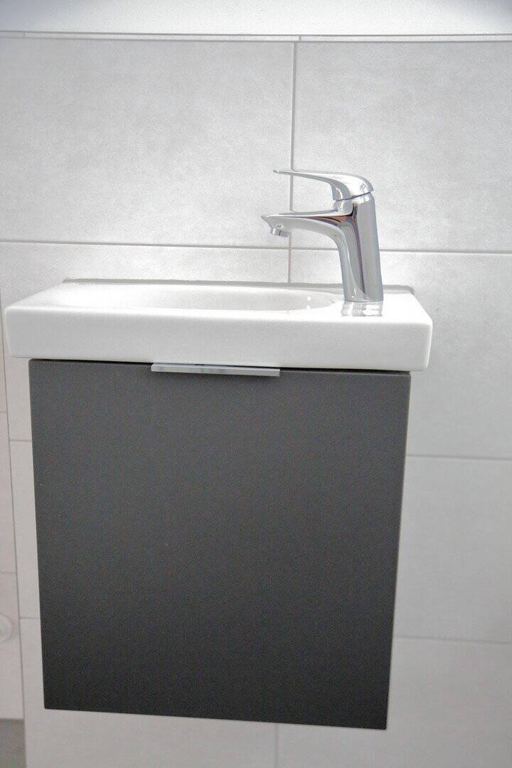 • Bad - Waschb. mit Unterschrank - 4 Zimmer Etagenwohnung in Unterhaching