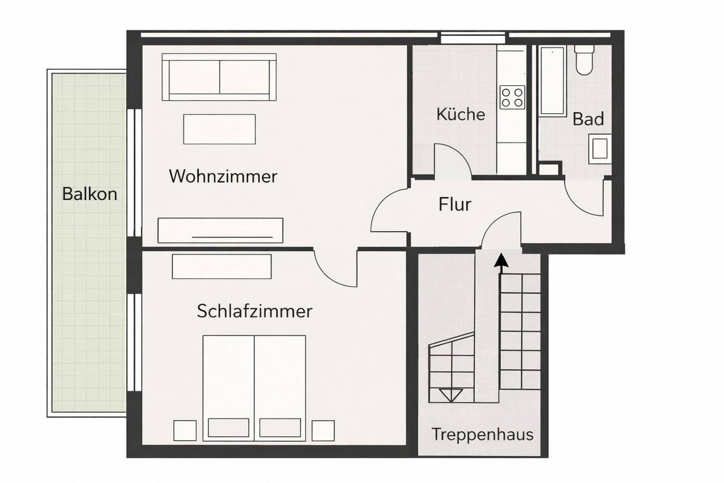 • Schlafzimmer mit Balkonzugang - 2 Zimmer Etagenwohnung zum Kaufen in Beuren