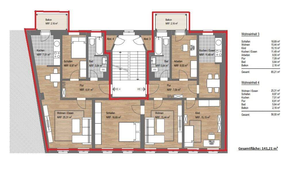 Gesamtgröße:ca. 141,00 m²