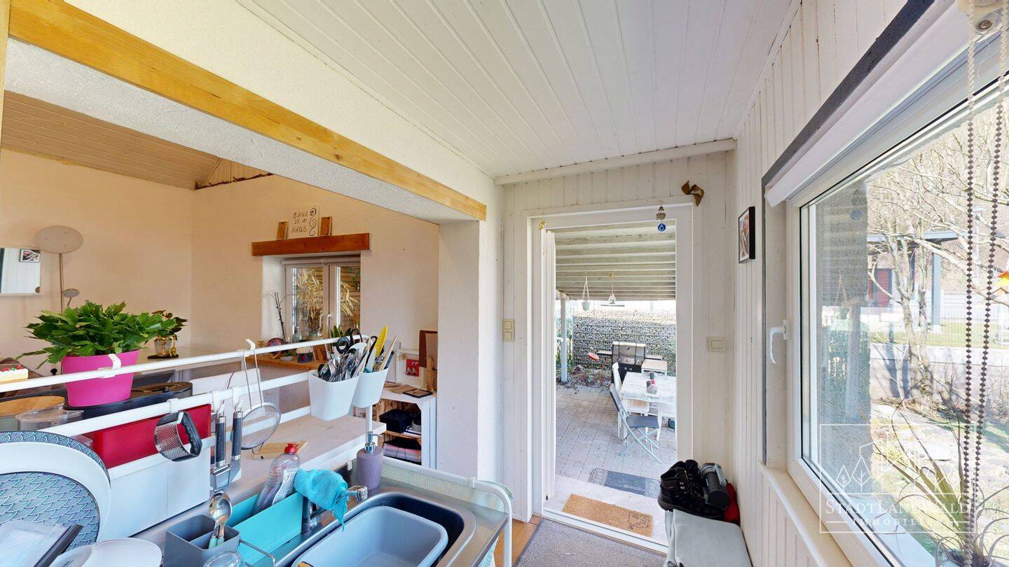 • Terrasse mit überdachtem Freisitz - 2 Zimmer Einfamilienhaus in Schönau (Pfalz)