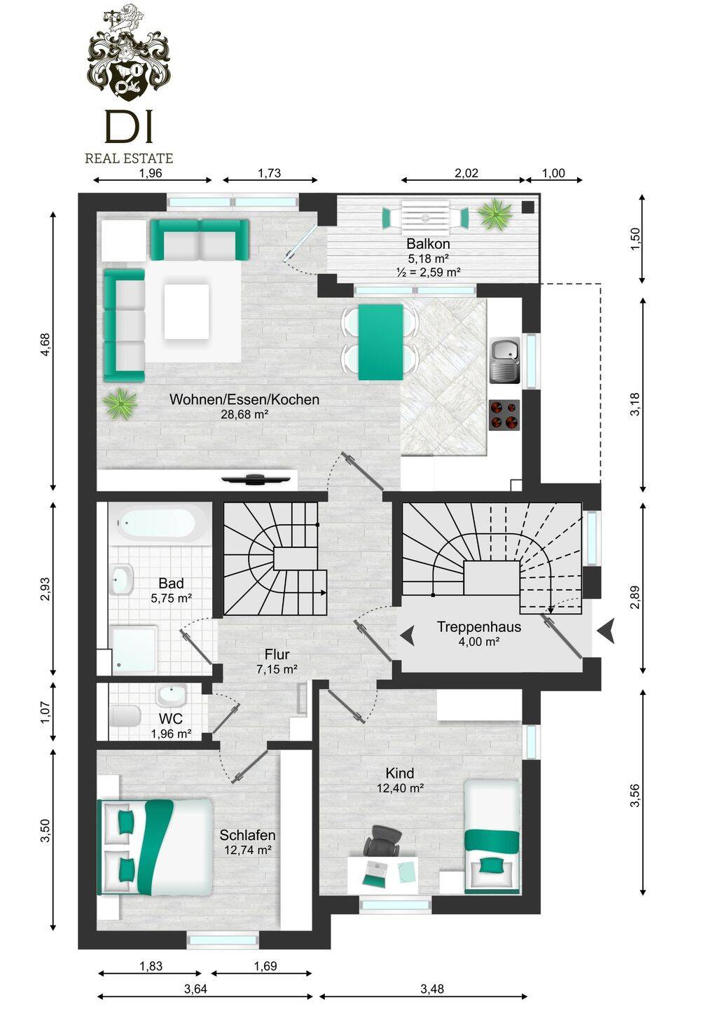 Zimmeranzahl :3 Gesamtgröße :ca. 69,00 m² Wohnfläche :ca. 69,60 m² Baujahr :2022 Frei ab :01.05.2026 Balkon :