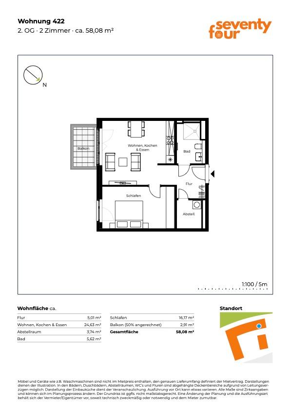 Zimmeranzahl :2 Gesamtgröße :ca. 58,08 m² Stand vom :07.04.2026