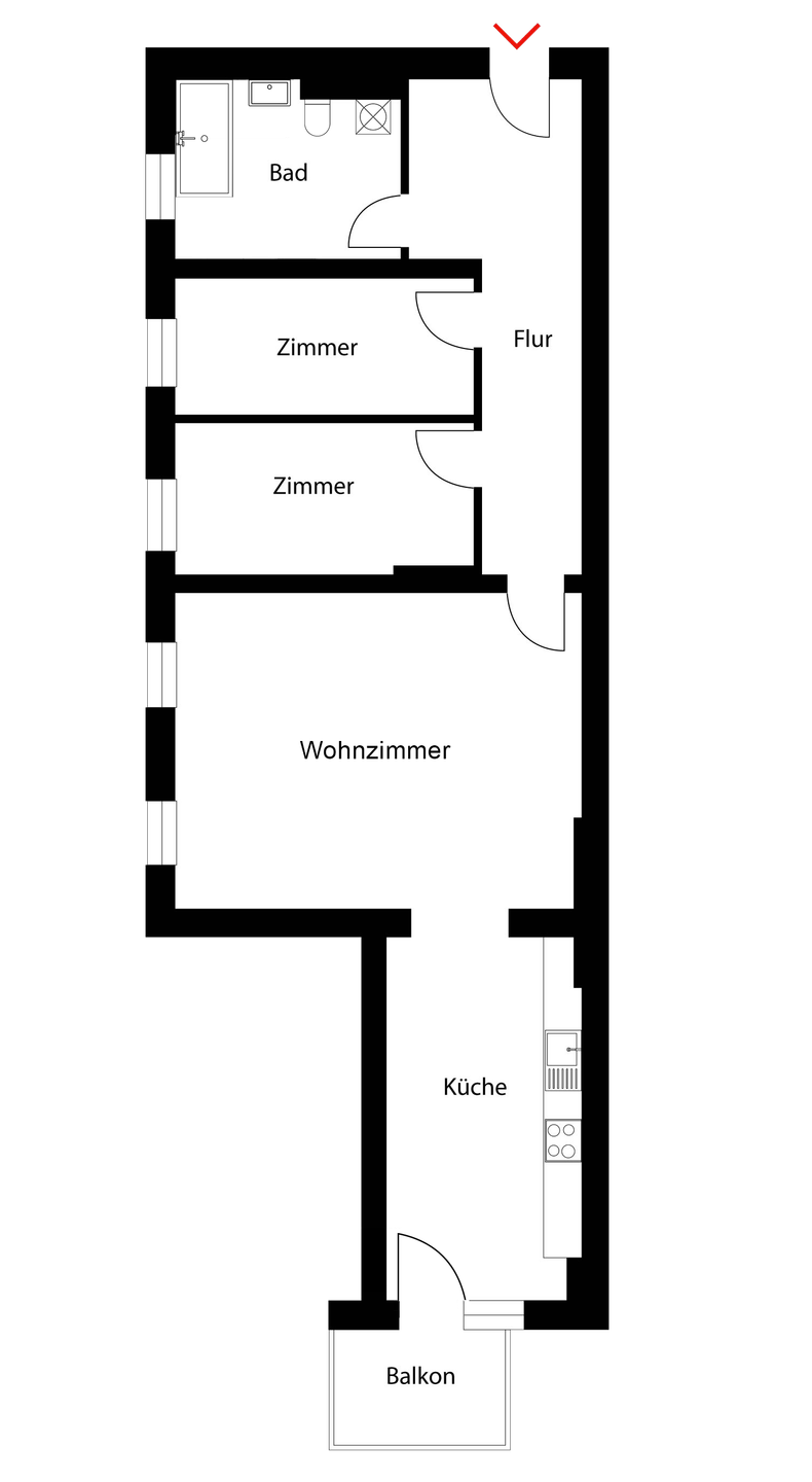 • Küche mit Balkonzugang - 3 Zimmer Etagenwohnung in Berlin