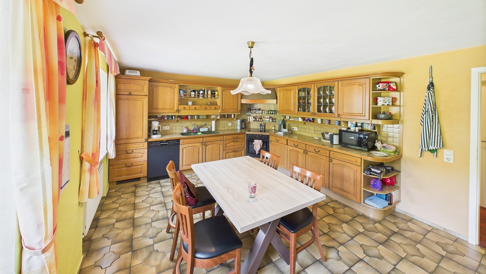 Großzügiges Anwesen in der Südeifel mit historischem Flair, modernem Wohnkomfort und vielfältigen Nutzungsmöglichkeiten. Das Wohnhaus bietet ca. 241 m² auf drei Ebenen und 8 Zimmer (zzgl. Küche, 3 Bäder und Gäste-WC). Besonderheit: Das Haus kann komplett als Einheit genutzt oder per Zwischentür im 1. OG in 2 getrennte Wohnungen geteilt werden – jeweils eigener Eingang und eigenes Treppenhaus (ideal für Mehrgenerationen, Wohnen & Arbeiten oder Teilvermietung). Im Wohnzimmer sorgt ein zugelassener Ofen für behagliche Wärme; die Holzheizung besitzt Bestandsschutz. Ergänzend: Flüssiggas-Zentralheizung (2016) und Solarunterstützung.