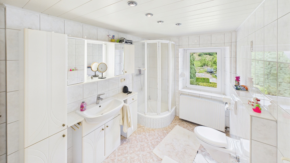 Insgesamt 3 moderne Bäder plus Gäste-WC (hell gefliest, gepflegt, zeitgemäß).