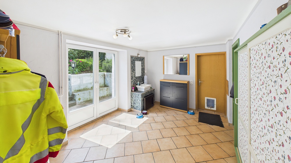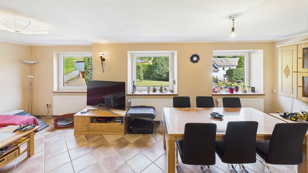 Großzügiges Anwesen in der Südeifel mit historischem Flair, modernem Wohnkomfort und vielfältigen Nutzungsmöglichkeiten. Das Wohnhaus bietet ca. 241 m² auf drei Ebenen und 8 Zimmer (zzgl. Küche, 3 Bäder und Gäste-WC). Besonderheit: Das Haus kann komplett als Einheit genutzt oder per Zwischentür im 1. OG in 2 getrennte Wohnungen geteilt werden – jeweils eigener Eingang und eigenes Treppenhaus (ideal für Mehrgenerationen, Wohnen & Arbeiten oder Teilvermietung). Im Wohnzimmer sorgt ein zugelassener Ofen für behagliche Wärme; die Holzheizung besitzt Bestandsschutz. Ergänzend: Flüssiggas-Zentralheizung (2016) und Solarunterstützung.