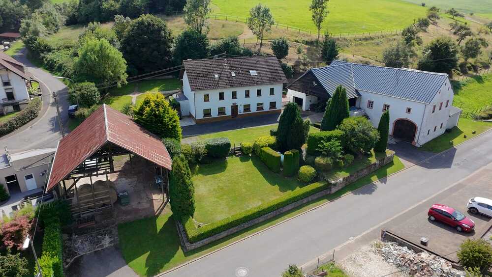 Großzügiges Anwesen in der Südeifel mit historischem Flair, modernem Wohnkomfort und vielfältigen Nutzungsmöglichkeiten. Das Wohnhaus bietet ca. 241 m² auf drei Ebenen und 8 Zimmer (zzgl. Küche, 3 Bäder und Gäste-WC). Besonderheit: Das Haus kann komplett als Einheit genutzt oder per Zwischentür im 1. OG in 2 getrennte Wohnungen geteilt werden – jeweils eigener Eingang und eigenes Treppenhaus (ideal für Mehrgenerationen, Wohnen & Arbeiten oder Teilvermietung). Im Wohnzimmer sorgt ein zugelassener Ofen für behagliche Wärme; die Holzheizung besitzt Bestandsschutz. Ergänzend: Flüssiggas-Zentralheizung (2016) und Solarunterstützung.
