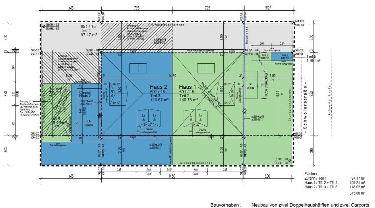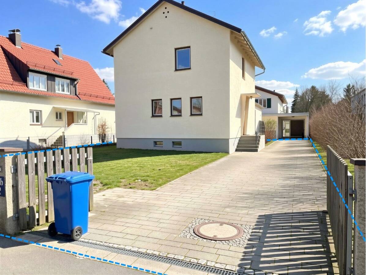 • Straßenansicht Grundstück (Haus 1 und Haus 2) - Baugenehmigung erteilt! Baugrundstück mit für moderne DHH direkt an der Aubinger Lohe