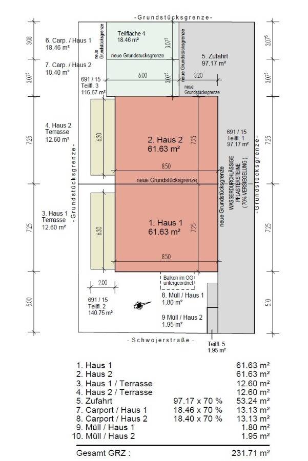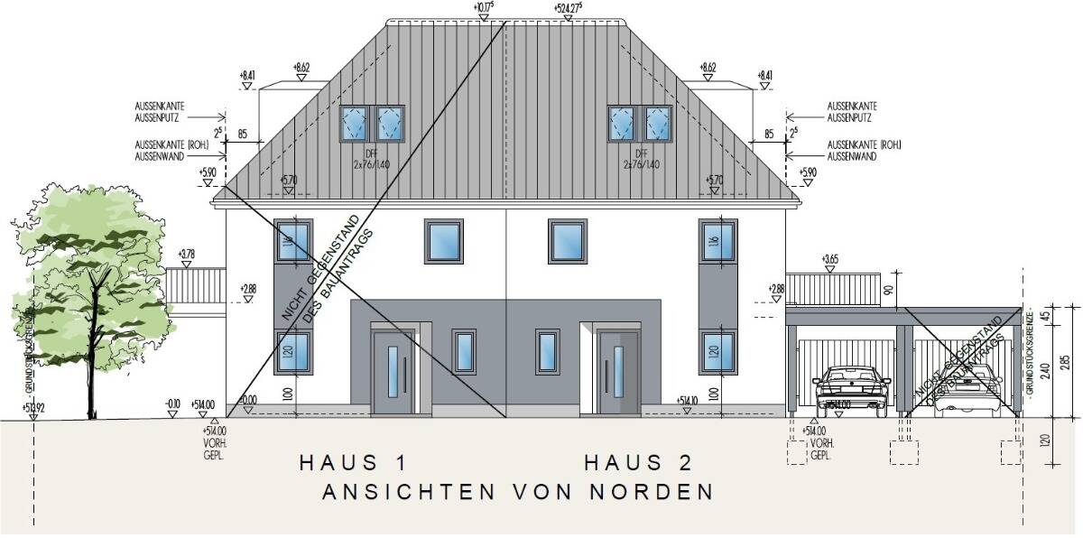 • Straßenansicht Grundstück (Haus 1 und Haus 2) -