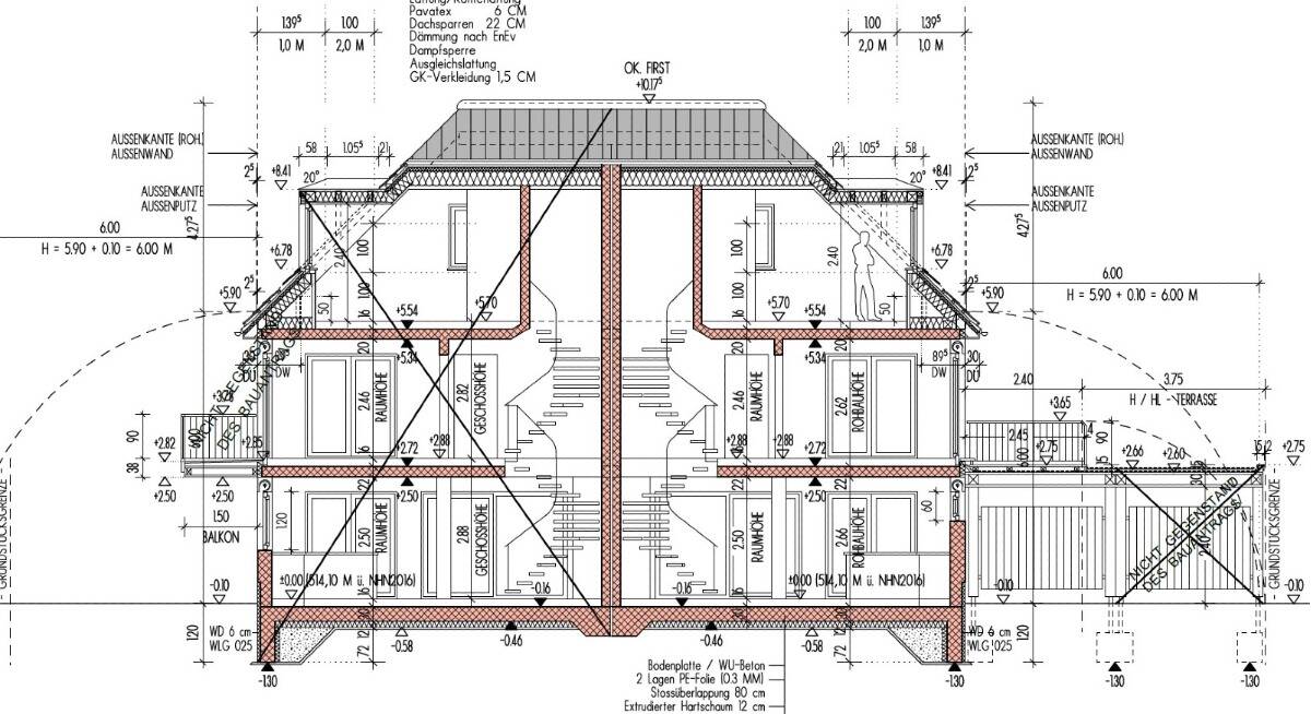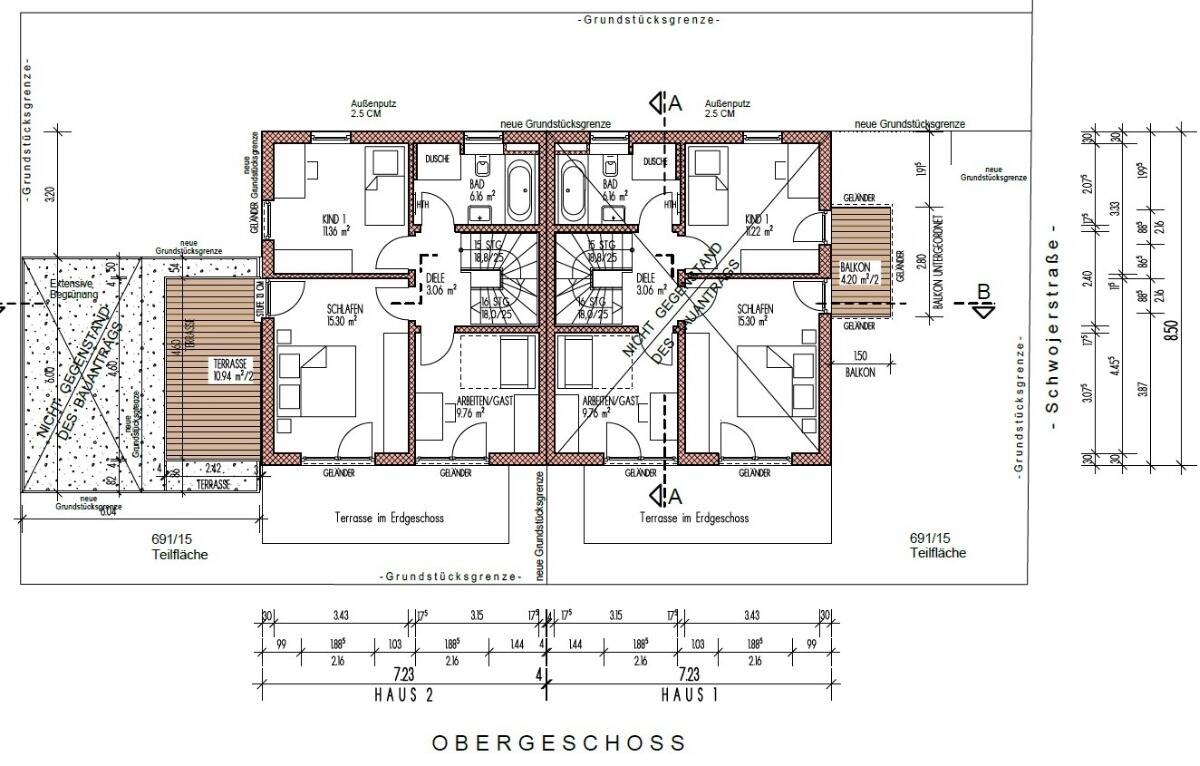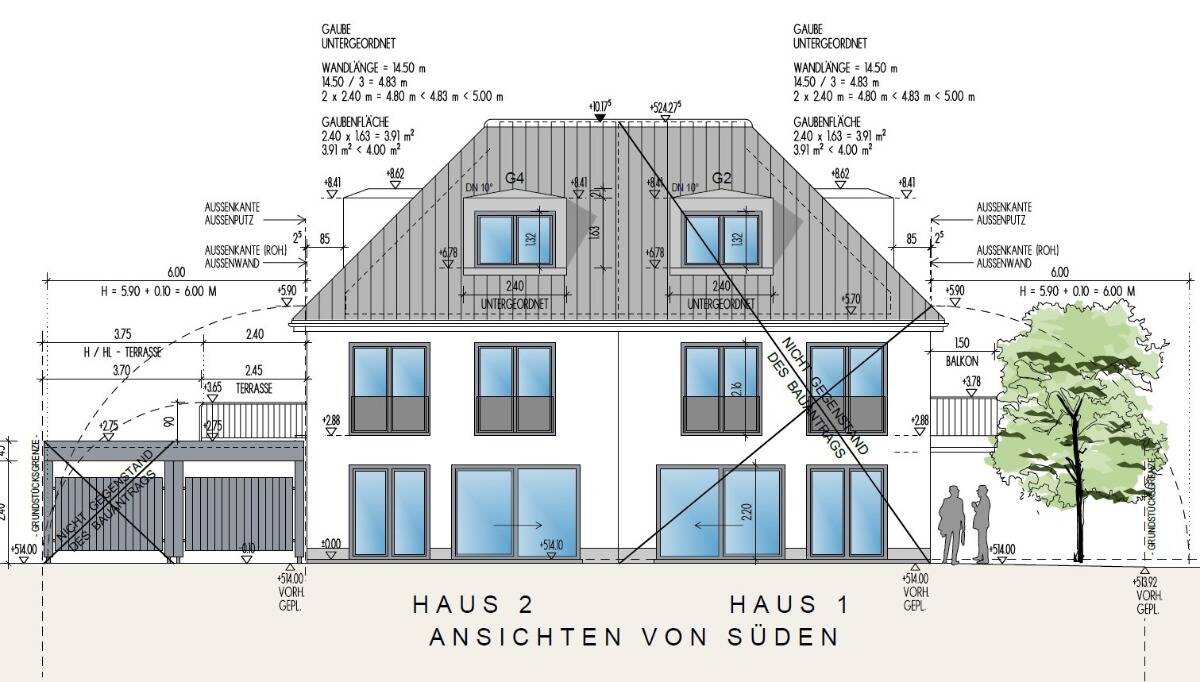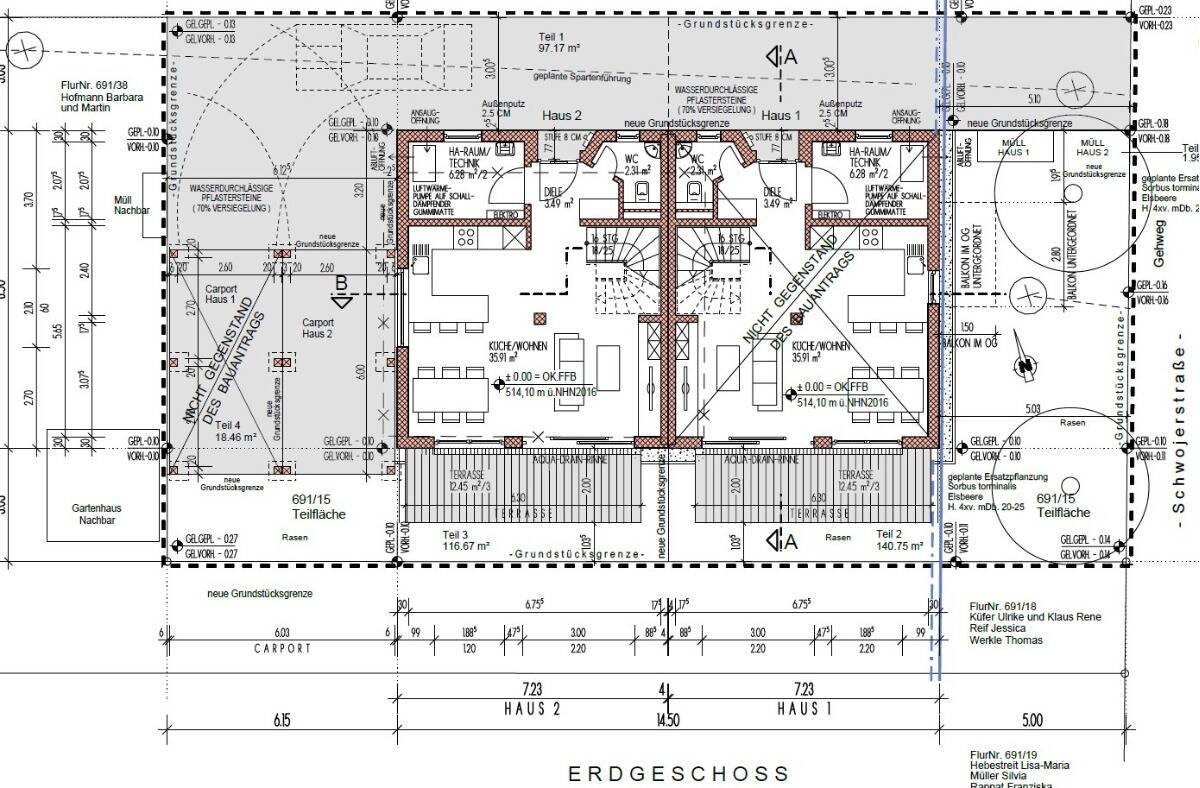 • Seitenansicht Grundstück (Haus 1 und Haus 2) -