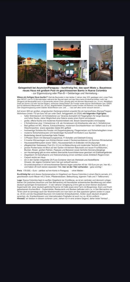 Sie befinden sich hier: Haus in Paraguay . ParaguayAsuncion neues HausPool im Barrio in Neuhof - 3372762505-208-4881 | 1A-Immobilienmarkt.de