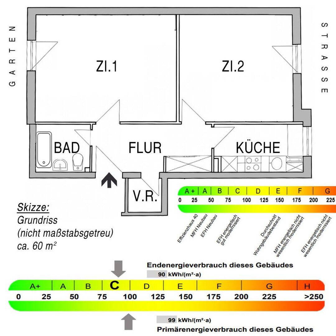 | Energieverbrauchkennwert: | 90 kWh/(m²·a) kWh/(m²·a)