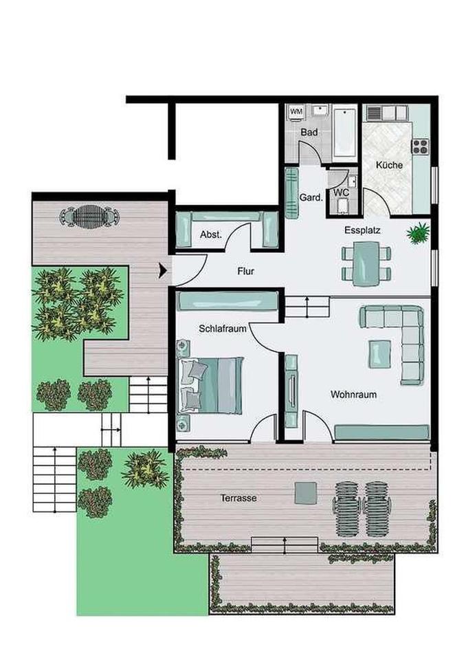 Sie befinden sich hier: Wohnen mit Ausblick - voll möbilierte 2,5-Zi.-Terrassenwohnung mit Privatgarten - Stuttgart-Süd in Stuttgart Lehen - 3369419961-203-9281 | 1A-Immobilienmarkt.de