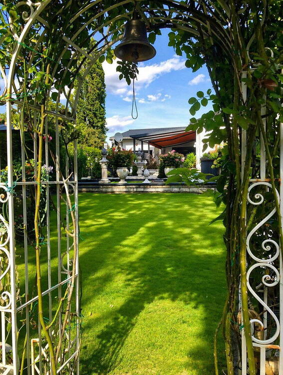 • Garten Teilansicht - Traumlage an der Briese: hochwertiger Bungalow mit parkähnlichem Garten und Pool