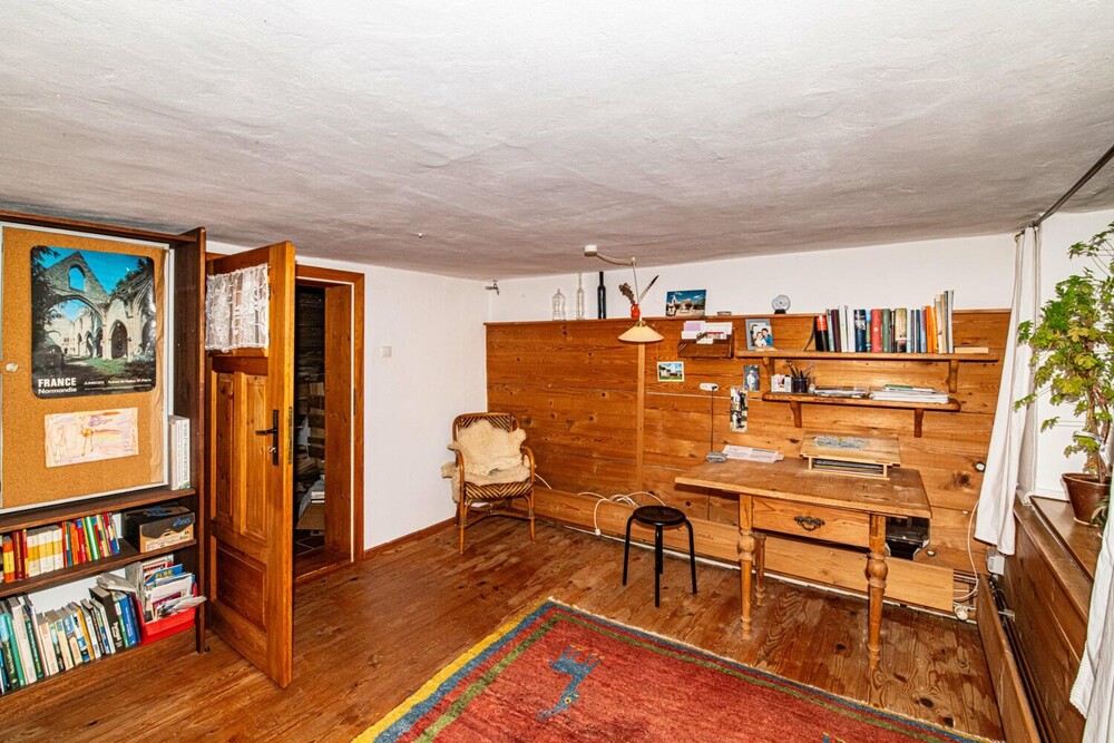 Das Erdgeschoss bietet neben großzügigen Wohnflächen ein Badezimmer mit begehbarer Dusche. Im Obergeschoss befindet sich ein besonderes Highlight: ein Zimmer mit eigenem Eingang, WC und modernem Kaminofen (Rondolino) – ideal als Gästebereich, Homeoffice oder zur separaten Nutzung.
