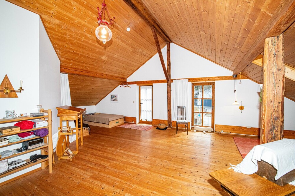 Auf ca. 212 m² Wohnfläche entfaltet sich ein gemütliches Zuhause mit viel Raum für individuelle Lebenskonzepte. Herzstück ist die großzügige Stube mit traditionellem Kachelofen aus Österreich, der für eine besonders behagliche Atmosphäre sorgt. Hochwertige Dielenböden und sichtbare Holzelemente verleihen dem Haus seinen unverwechselbaren, authentischen Charme.
