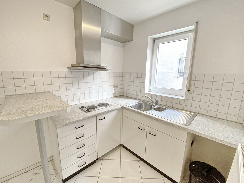 Bei der vorhandenen Einbauküche handelt es sich um eine ältere Teeküche aus der vorherigen Nutzung der Wohnung als Büro.