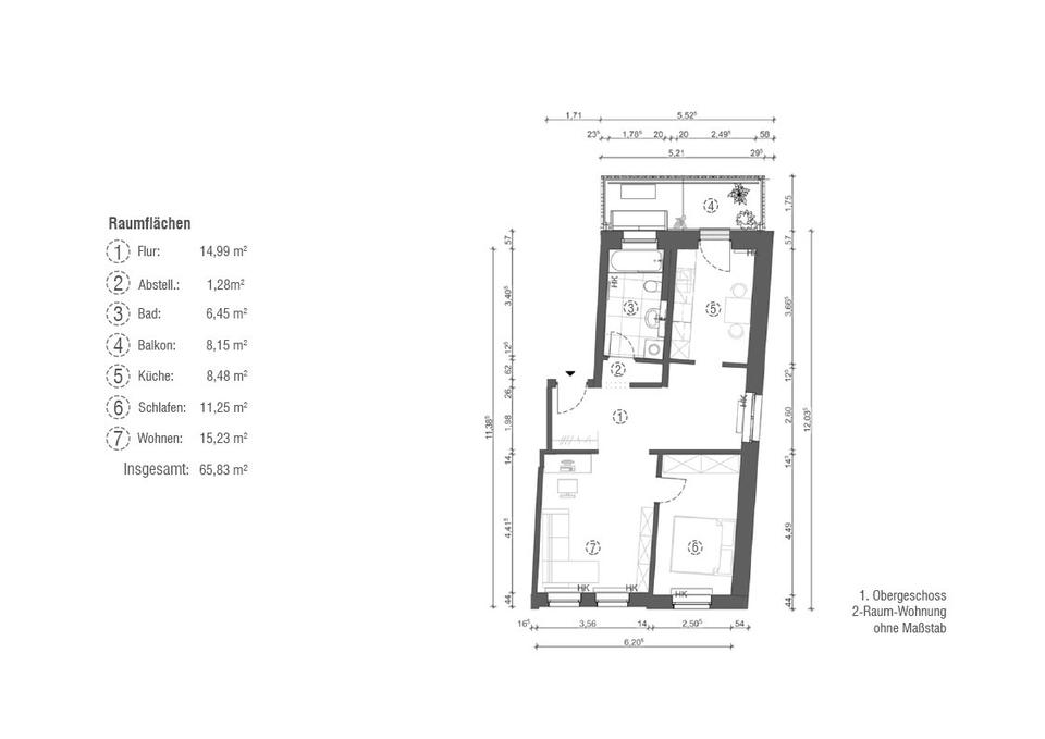 | Gesamtgröße: | ca. 65,83 m² |
