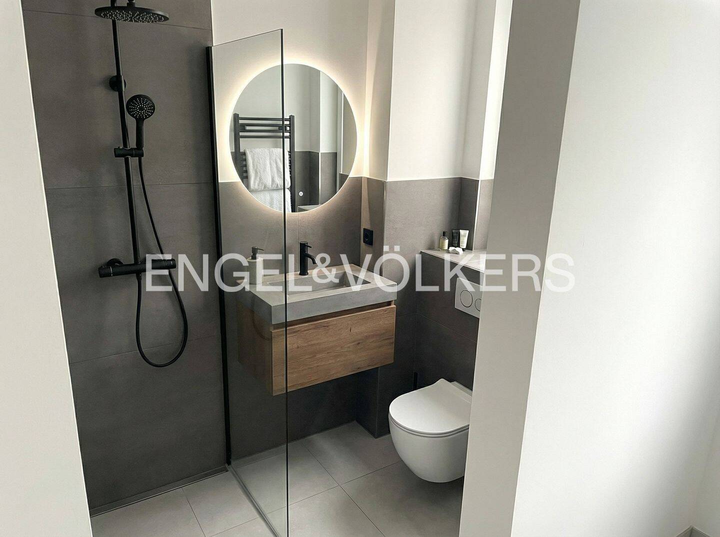 Gäste-WC mit bodentiefer Dusche - Beispiel (KI-Optimiert) -