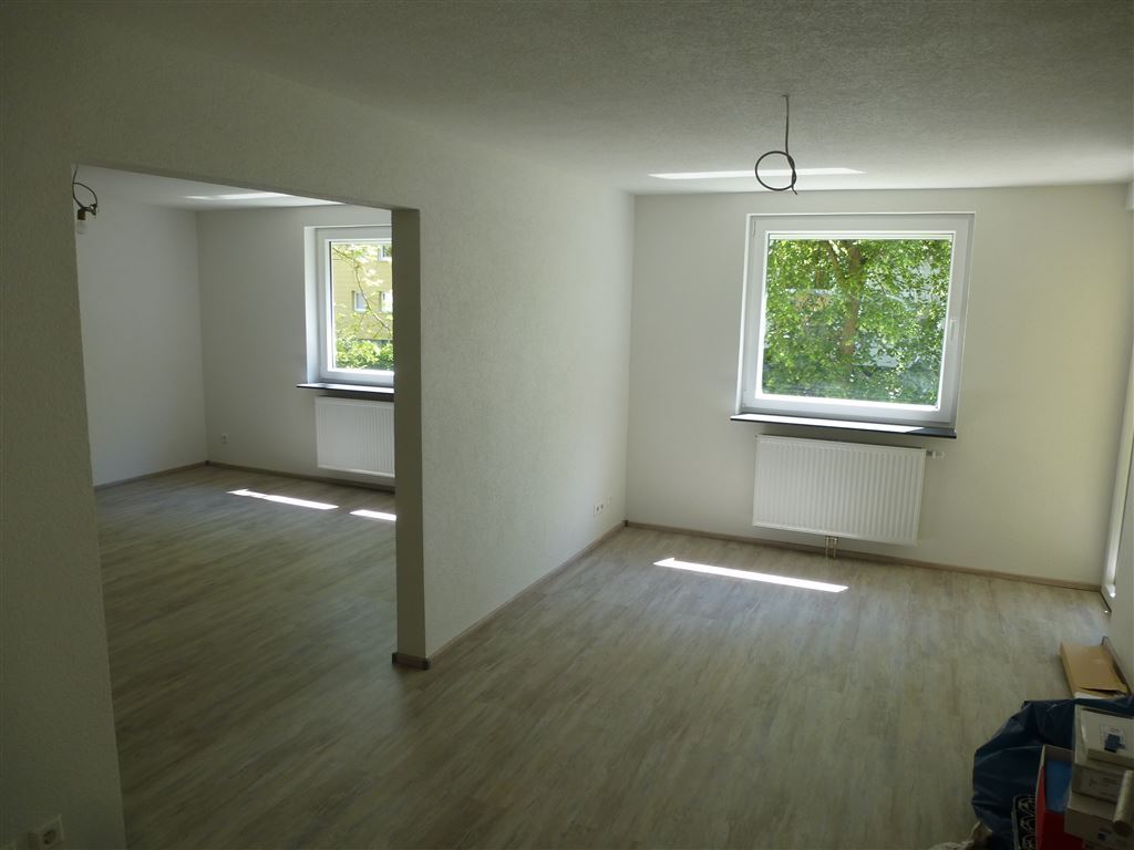 Die Wohnung wurde vollständig renoviert - nachfolgend die wesentlichen Punkte: Vinylböden in den Wohn- u. Schlafräumen - große, moderne Fliesen im Flur - Bad m. Dusche - Neue Kunststofffenster m. elektr. Rolläden - überall Rauputz - neue Einbauküche mit allen Elektrogeräten - sonniger Balkon u. Autoabstellplatz