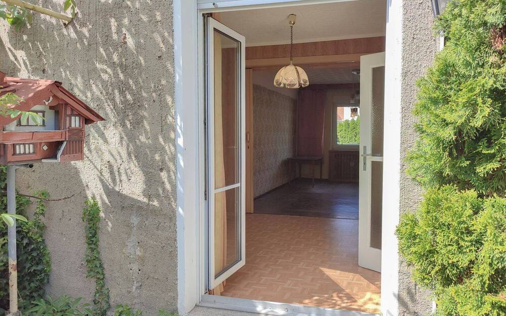 • Wohnzimmer mit Ziehharmonika-Tür - 4 Zimmer Reihenmittelhaus zum Kaufen in Hoyerswerda