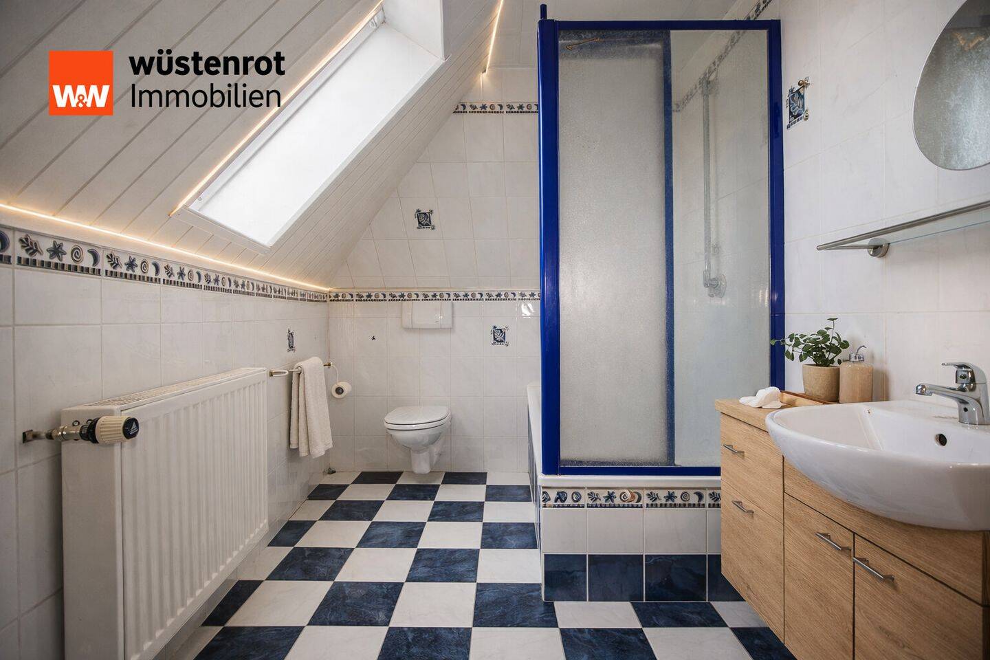 • Helles Badezimmer im Dachgeschoss mit nautischen Akzenten -