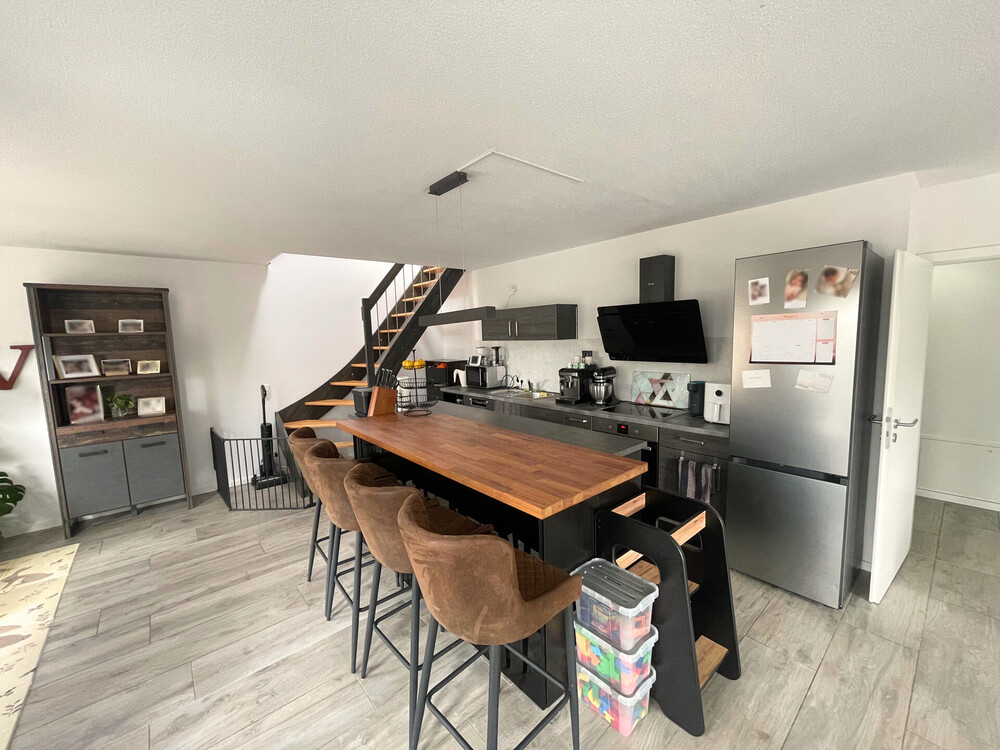 Das Herzstück bildet die helle Wohnküche mit großzügigem Platzangebot, die bereits mit einer Einbauküche ausgestattet ist und nahtlos in den Wohnbereich übergeht. Von hier aus gelangen Sie auf die weitläufige Dachterrasse, die ein attraktives Freiluftambiente schafft und zusätzlichen Wohnkomfort bietet.