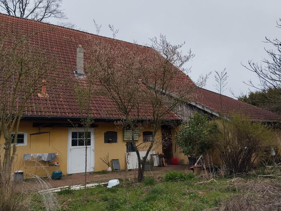 Haus für Wohnprojekt: Doppelkotten mit Nebengebäuden und Acker