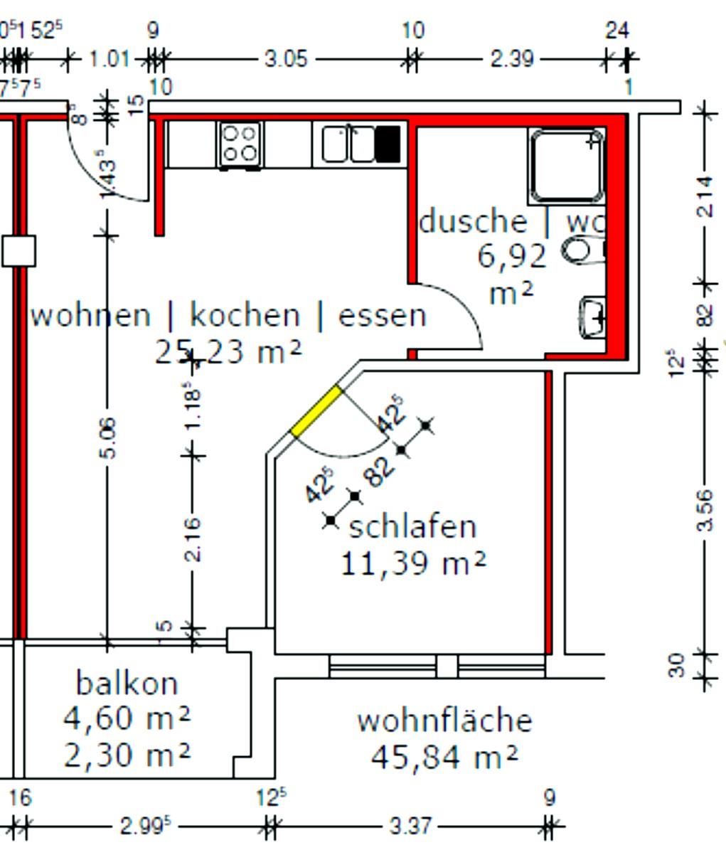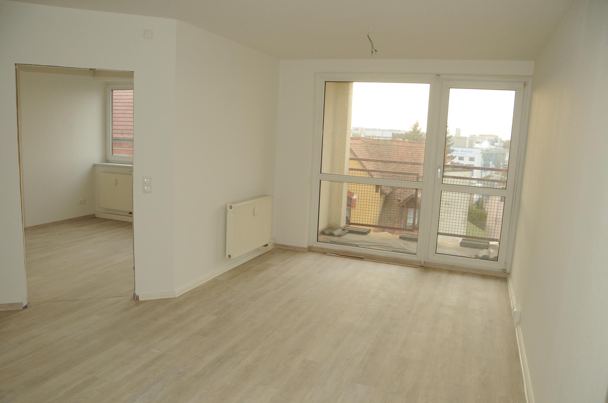 Die Wohnung verfügt bei ca. 45 m² Wohnfläche über Wohnzimmer mit offener Küche und Balkon, Schlafzimmer, sep. WC, Duschbad. Die Wohnung ist mit Laminatboden ausgestattet und verfügt über eine 4, 60 m² große Loggia Richtung Westen.