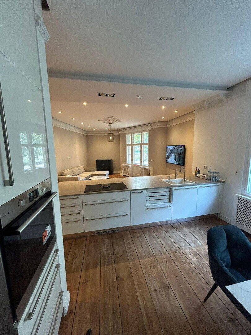 • Küche + Wohnzimmer - Altbauwohnung mit Balkon (101 m²) in Steglitz - saniert - provisionsfrei - frei ab 31.07.2026